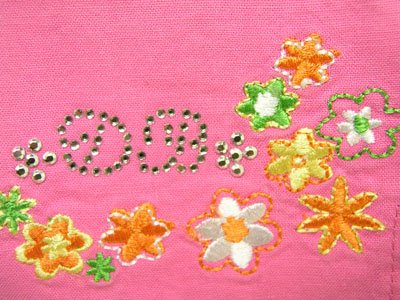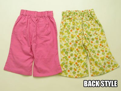 ほど良い厚さで、真冬以外のシーズンに活躍しそうなコットンパンツ。緩やかなブーツカットスタイルで、綺麗なシルエットを描きます。裾には短いスリットが入っているので動きやすさも重視。前にポケットが2つと、お尻にも一つポケットが付いています♪ウエストは半ゴムで、ボタンはスナップになっているので着脱も楽々。マゼンタはパンツ裾にラインストーンのロゴとお花の刺繍、イエロープリントはポケットにラインストーンのロゴが輝きます。パッと明るいカラーなので、春夏にピッタリ!素材:コットン100%