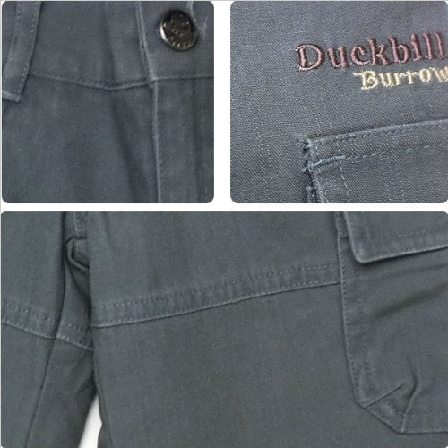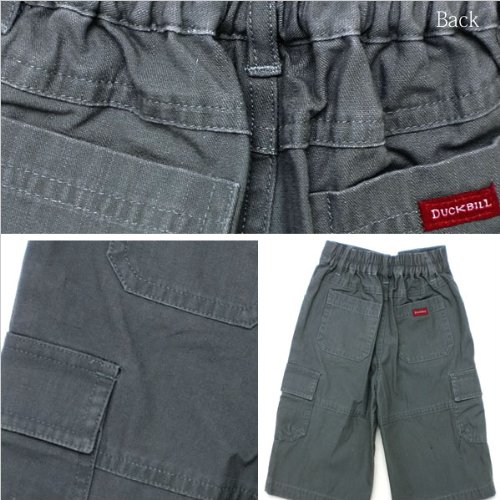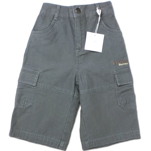落ち着いたグレイッシュな色が印象的なパンツです。たくさん遊んで活発に動き回る季節には、いくつあっても困らないものです♪ポケットは前2つ、サイトと後ろ2つの計6つ!ウエストは半ゴムになっているので着脱も簡単です。Duckbillのマークと文字入りの金属のボタンと落ち着いた色合いで上品さを演出する一方で、 サイトのポケット上に施されたポップな色合いと字体の刺繍が、子供らしさを残したデザインに仕上がっています。コーディネートの組み合わせに悩む心配もありません♪春夏物。素材:コットン100%