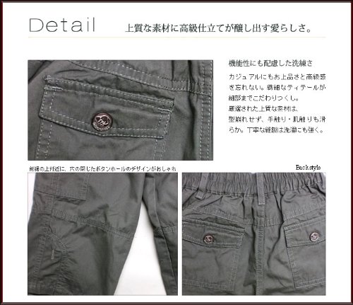 遊び心いっぱい!柔らかコットン7分丈パンツ(濠Du)カーキ 95cm