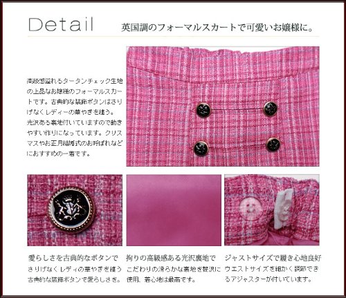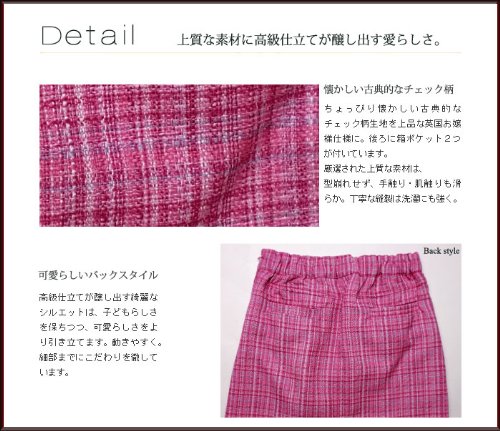 英国調のお嬢様フォーマルタイトスカート(濠Du)ピンクチェック110cm