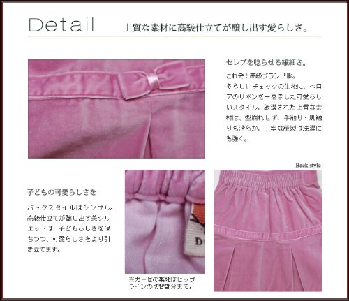 リボンとベロアでお嬢様スタイル♪プリーツミニスカート(濠Du)ピンク 100cm