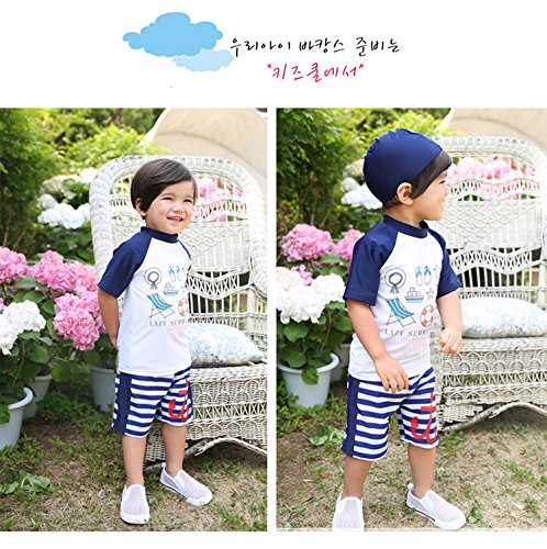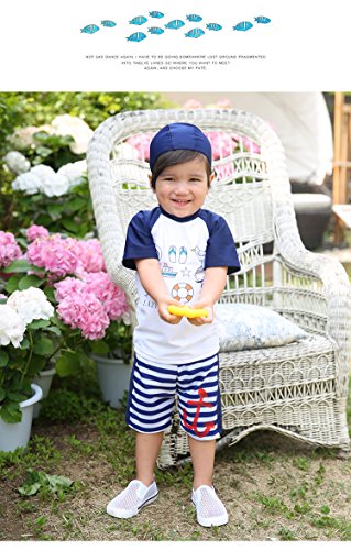 「楽々セレクトショップ」DUDU&MUMU正規品 大人気 可愛い子供用水着 男の子 スクール セパレート 上下セット キャップ付き 海水浴 スイミング ベビー フリル スカート 帽子付き お誕生日プレゼント 出産お祝い 幼稚園用 (110)