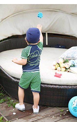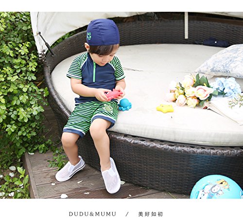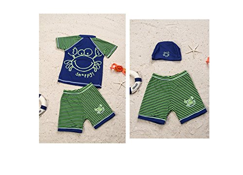 「楽々セレクトショップ」DUDU&MUMU正規品 大人気 可愛い子供用水着 男の子 蟹柄 スクール セパレート 上下セット キャップ付き 海水浴 スイミング ベビー フリル スカート 帽子付き お誕生日プレゼント 出産お祝い 幼稚園用 (90)