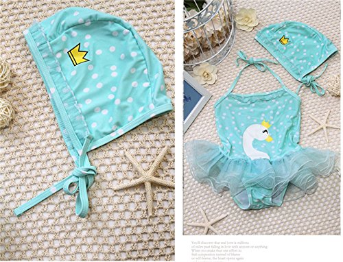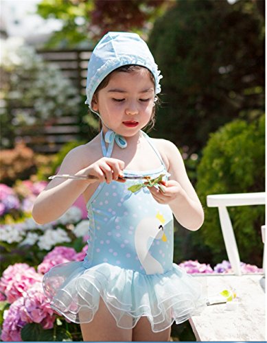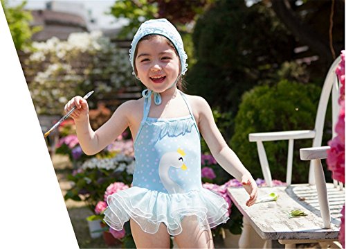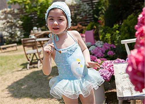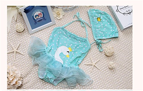 「楽々セレクトショップ」DUDU&MUMU正規品 大人気 可愛い子供用水着 女の子 連体式水着スワンレース スクール セパレート 上下セット 女児 ガールズ ビキニ キャップ付き 海水浴 スイミング ベビー フリル スカート 帽子付き お誕生日プレゼント 出産お祝い 幼稚園用 (90)