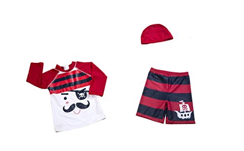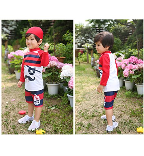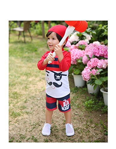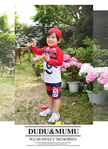 「楽々セレクトショップ」DUDU&MUMU正規品 大人気 可愛い子供用水着 男の子 赤色 髭柄 スクール セパレート 上下セット キャップ付き 海水浴 スイミング ベビー フリル スカート 帽子付き お誕生日プレゼント 出産お祝い 幼稚園用 (120)