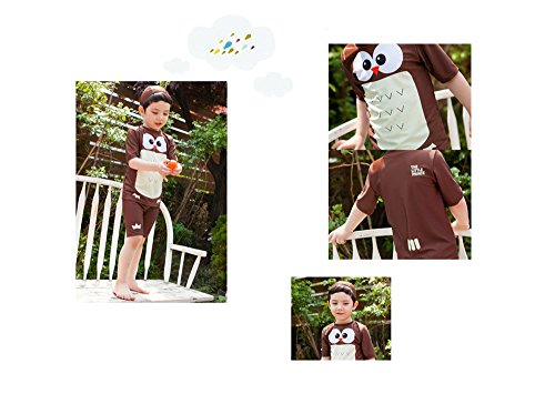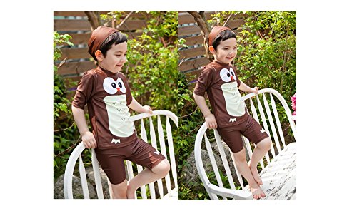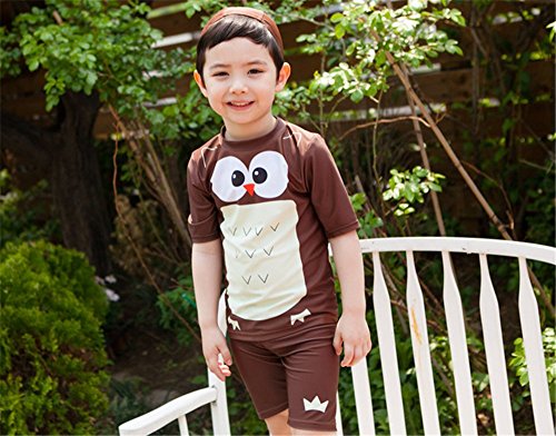 「楽々セレクトショップ」DUDU&MUMU正規品 大人気 可愛い子供用水着 男の子 ふくろう柄 上下セット スクール セパレート キャップ付き 海水浴 スイミング ベビー フリル スカート 帽子付き お誕生日プレゼント 出産お祝い 幼稚園用 (120)