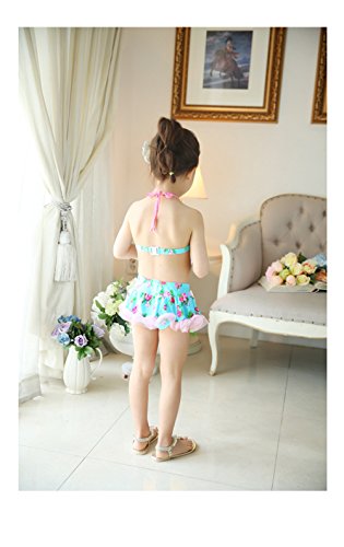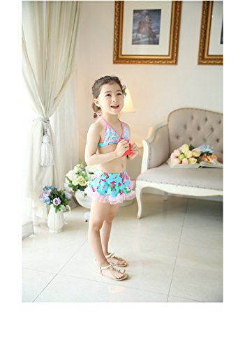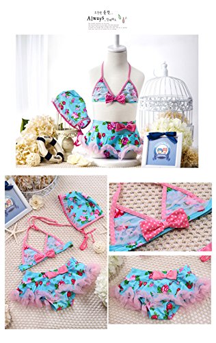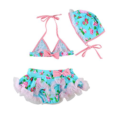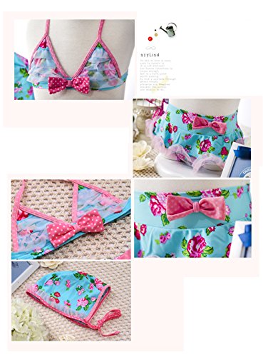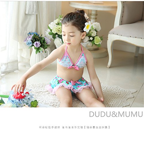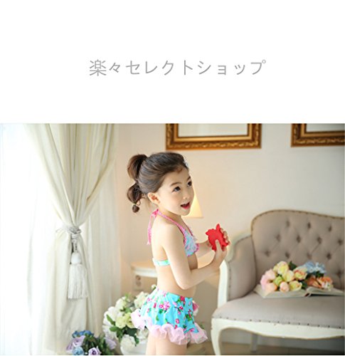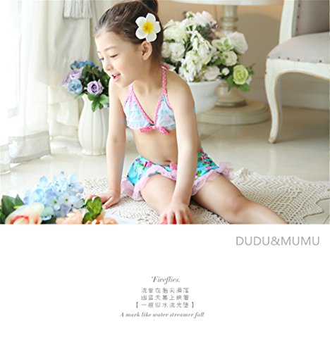 「楽々セレクトショップ」DUDU&MUMU正規品 大人気 可愛い子供用水着 女の子 花柄 リボン付き スクール セパレート 上下セット 女児 ガールズ ビキニ キャップ付き 海水浴 スイミング ベビー フリル 帽子付き お誕生日プレゼント 出産お祝い 幼稚園用 (100)
