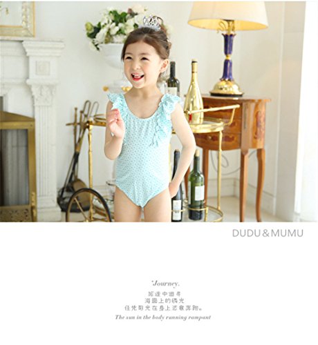 「楽々セレクトショップ」DUDU&MUMU正規品 大人気 可愛い子供用水着 女の子 点々柄 連体式水着スクール セパレート 上下セット 女児 ガールズ ビキニ キャップ付き 海水浴 スイミング ベビー フリル スカート ブルー 帽子付き お誕生日プレゼント 出産お祝い 幼稚園用 (110)