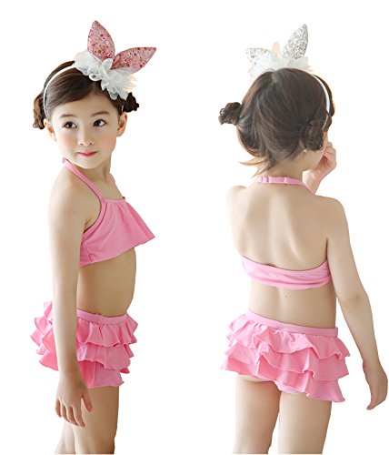 「楽々セレクトショップ」DUDU&MUMU正規品 大人気 可愛い子供用水着 女の子 ピンクチェリー スクール 桜桃 セパレート 上下セット 女児 ガールズ ビキニ キャップ付き 海水浴 スイミング ベビー フリル 帽子付き お誕生日プレゼント 出産お祝い 幼稚園用 (100)