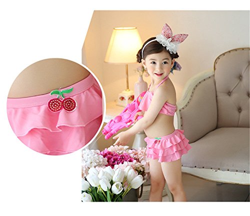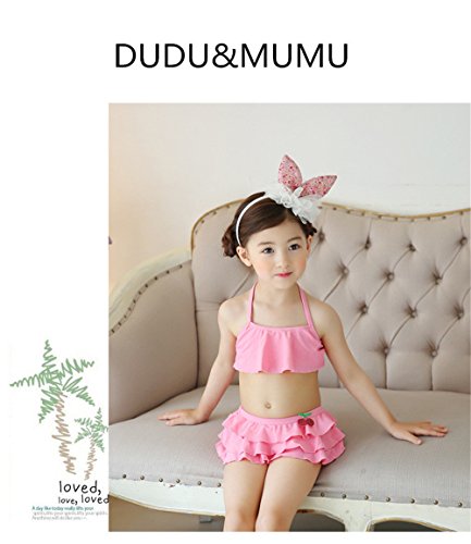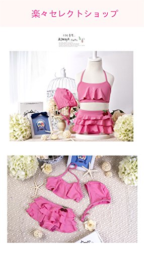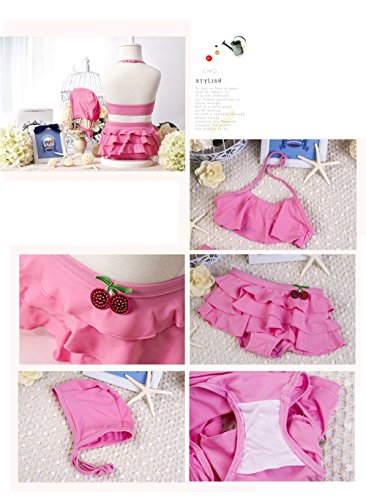 「楽々セレクトショップ」DUDU&MUMU正規品 大人気 可愛い子供用水着 女の子 ピンクチェリー スクール 桜桃 セパレート 上下セット 女児 ガールズ ビキニ キャップ付き 海水浴 スイミング ベビー フリル 帽子付き お誕生日プレゼント 出産お祝い 幼稚園用 (130)