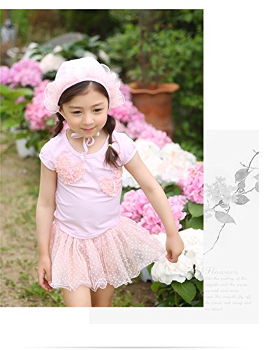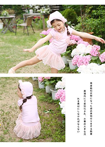 「楽々セレクトショップ」DUDU&MUMU正規品 大人気 可愛い子供用水着 女の子 ピンクふわふわスカートハートレース スクール セパレート 上下セット 女児 ガールズ ビキニ キャップ付き 海水浴 スイミング ベビー フリル 帽子付き お誕生日プレゼント 出産お祝い 幼稚園用 (100)