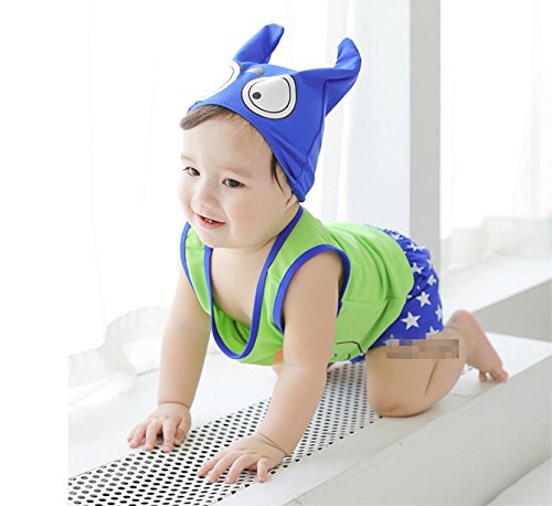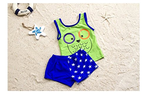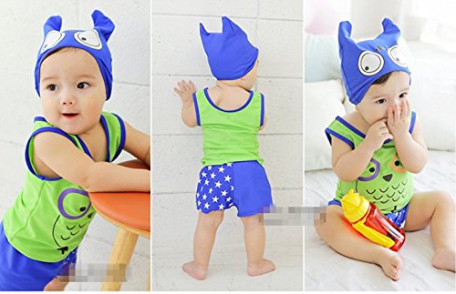 「楽々セレクトショップ」DUDU&MUMU正規品 大人気ふくろう柄 兄妹服 上下セット 可愛い子供用水着 男の子 女の子 ブルーストライプ スクール セパレート キャップ付き 海水浴 スイミング ベビー フリル スカート 帽子付き お誕生日プレゼント 出産お祝い 幼稚園用 (120, グリーン)