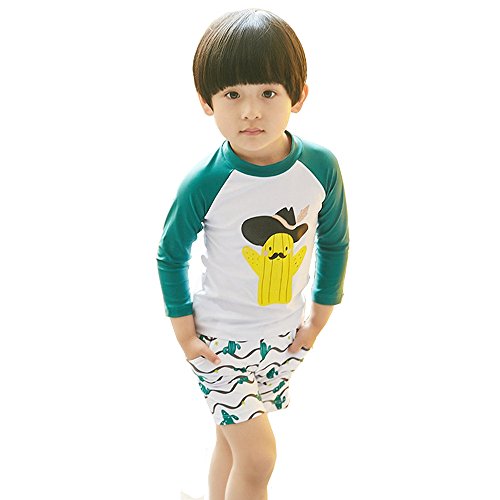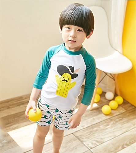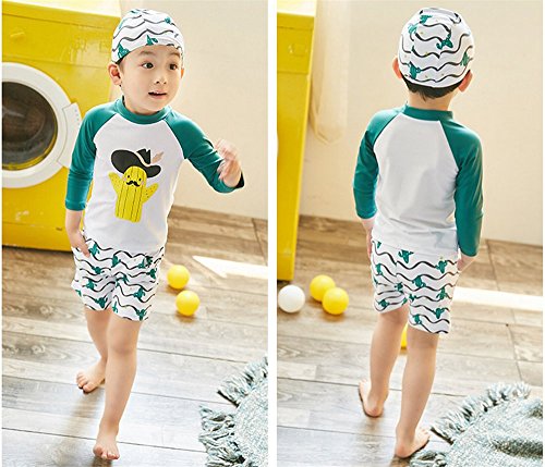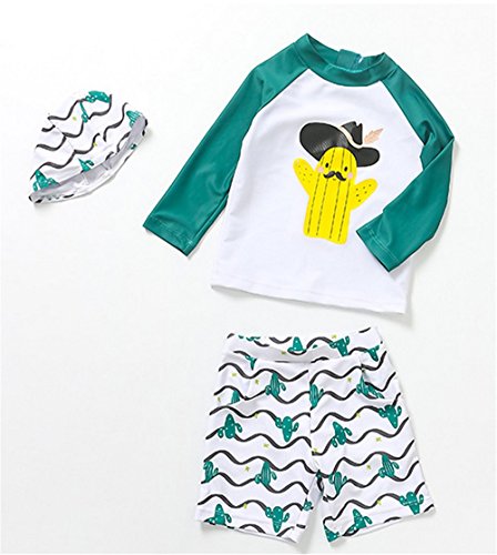「楽々セレクトショップ」DUDU&MUMU正規品 全2シリーズ サイズ90 100 110 120 130 140 可愛い子供用 水着 男の子 伸縮性 3点セットカクタス  キャップ付き (110)