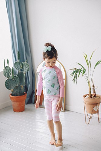 「楽々セレクトショップ」DUDU&MUMU正規品 長袖 カクタス サイズ90 100 110 120 130 140 可愛い子供用 水着 女の子 伸縮性 3点セット 上下セット キャップ付き 女児 ガールズ ビキニ キャップ付き 海水浴 スイミング ベビー フリル スカート 帽子付き お誕生日プレゼント 出産お祝い 幼稚園用 (110)