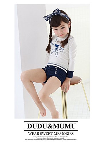 「楽々セレクトショップ」DUDU&MUMU正規品 可愛い子供用 水着 女の子伸縮性 水夫服 ガールズ キッズ 3点セット キャップ付き (120)