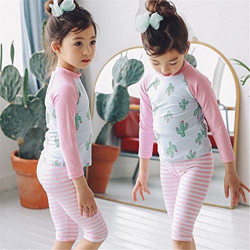 「楽々セレクトショップ」DUDU&MUMU正規品 長袖 カクタス サイズ90 100 110 120 130 140 可愛い子供用 水着 女の子 伸縮性 3点セット 上下セット キャップ付き 女児 ガールズ ビキニ キャップ付き 海水浴 スイミング ベビー フリル スカート 帽子付き お誕生日プレゼント 出産お祝い 幼稚園用 (120)