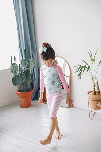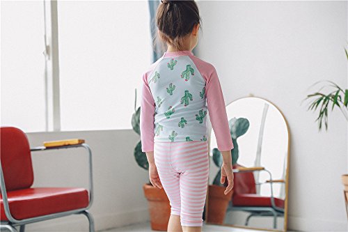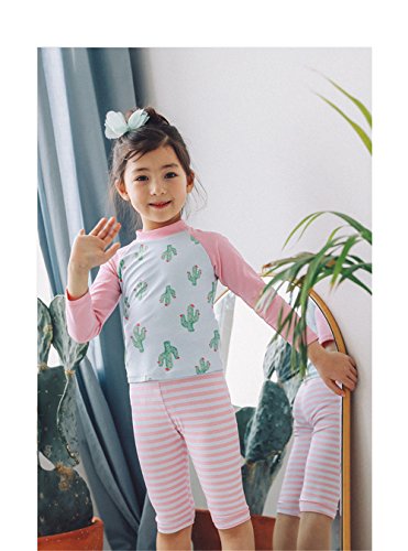 「楽々セレクトショップ」DUDU&MUMU正規品 長袖 カクタス サイズ90 100 110 120 130 140 可愛い子供用 水着 女の子 伸縮性 3点セット 上下セット キャップ付き 女児 ガールズ ビキニ キャップ付き 海水浴 スイミング ベビー フリル スカート 帽子付き お誕生日プレゼント 出産お祝い 幼稚園用 (90)