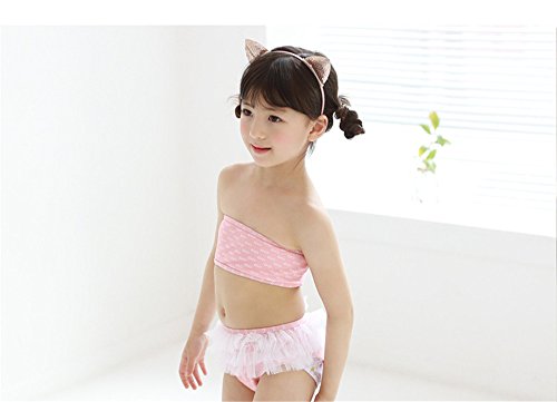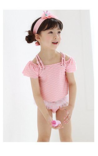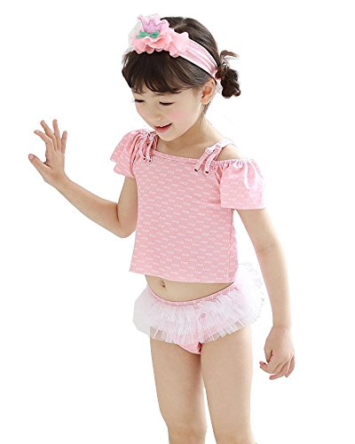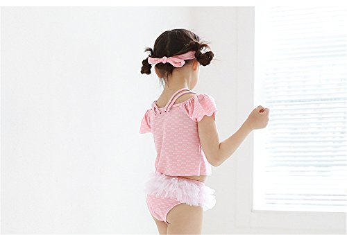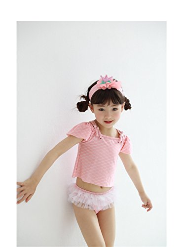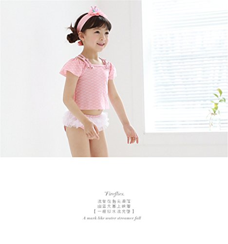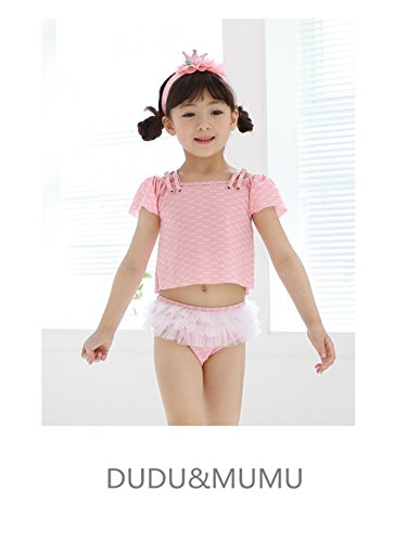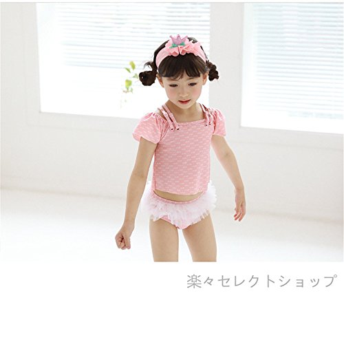 「楽々セレクトショップ」DUDU&MUMU正規品 可愛い子供用 水着 ガールズ キッズ水着 子供用 3点セット 半袖 リボン付き ピンク (110)
