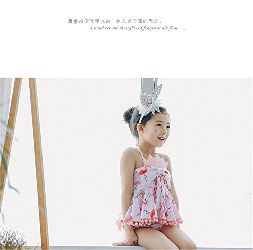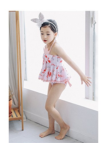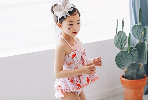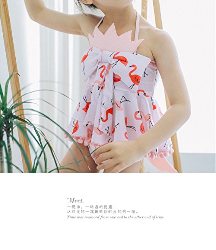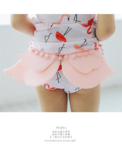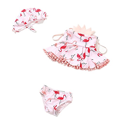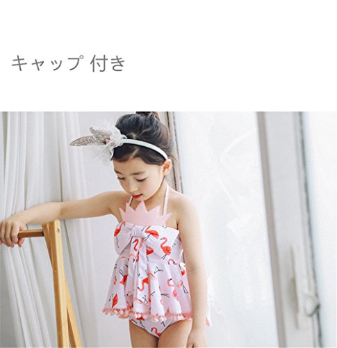 「楽々セレクトショップ」DUDU&MUMU正規品 可愛い子供用 水着 女の子 後ろ天使の翼を付き ガールズ キッズ 3点セット キャップ フラミンゴ柄 (120)