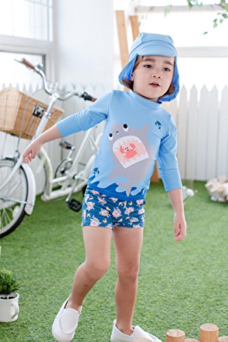 「楽々セレクトショップ」2018年新発売 キッズ 水着 男の子 キャップ付き スイムウェア セパレート 旅行 キュート 日焼け防止 伸縮性 海辺 温泉 記念写真 90~140cm 3点セット (90, カニ)