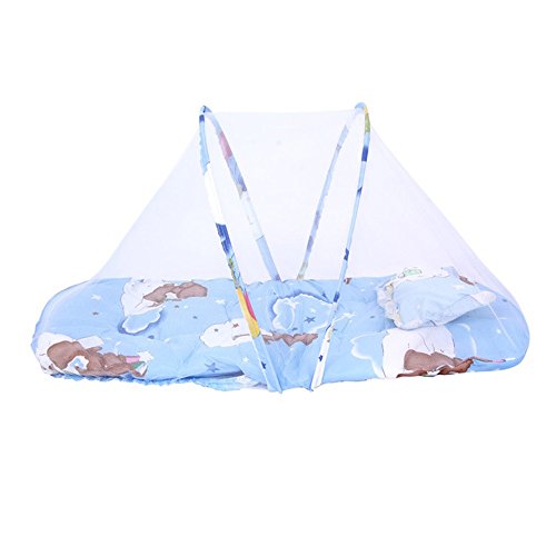 DWSIOOW 簡単収納折りたたみ ベビー 蚊帳 ワンタッチ コンパクト 携帯用 ベビーベッド用蚊帳 蚊対策 虫よけ 夏 必需品 お出かけ 持ち運びに便利 (ブルー)
