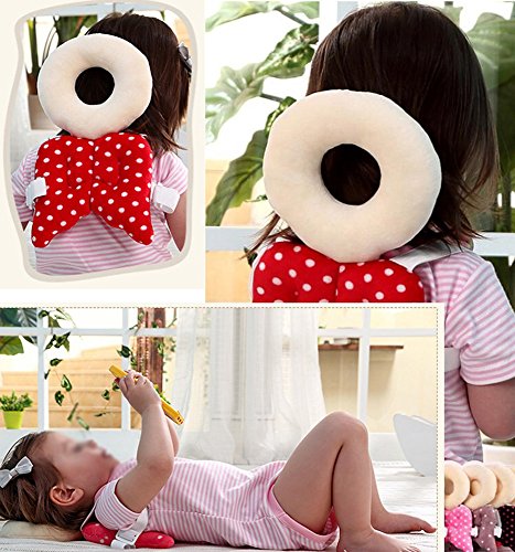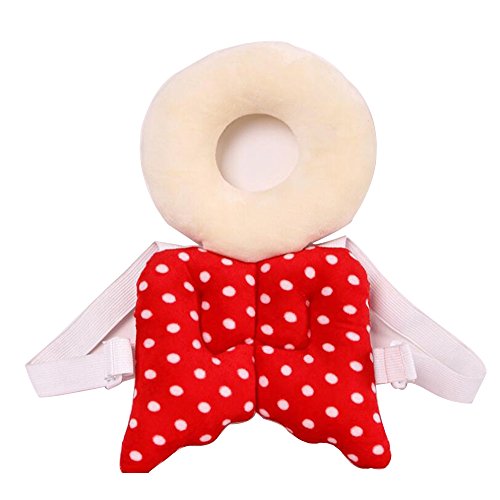 赤ちゃんのごっつん防止 安全パッド天使のパッド 可愛いてんとう虫 ミツバチ 超軽量 2wayリュックタイプ ベビー ヘルメット エンジェルパッド 頭を保護 セーフティー ひも調節可能 出産祝い 幼児枕 (レッド)