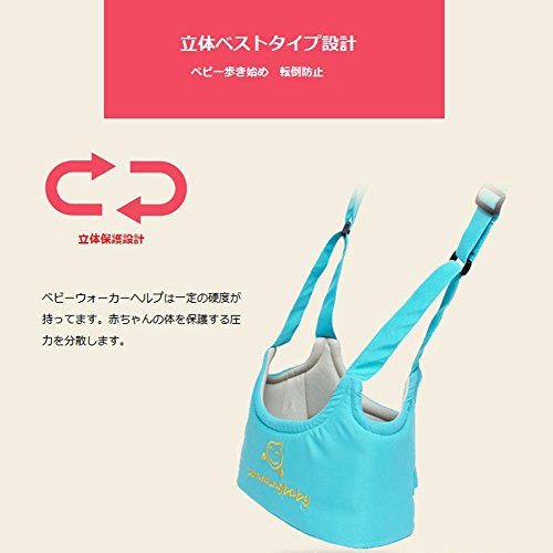 幼児ベビー歩行練習のアシスタント ハイハイやよちよち歩き始めのウォーカーヘルプ セーフティ ハーネス 迷子防止ひも ベビーキャリア 歩行補助ベルト 歩行器 転び防止 通気 選べる5色 調節可能 オールシーズン使用可能 男女兼用 (ブルー)