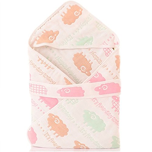 多機能 6重ガーゼケット ベビー おくるみ ガーゼタオル ベビーブランケット コットン100% 通気 フード付き (ひつじ)