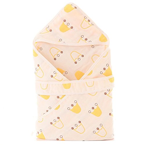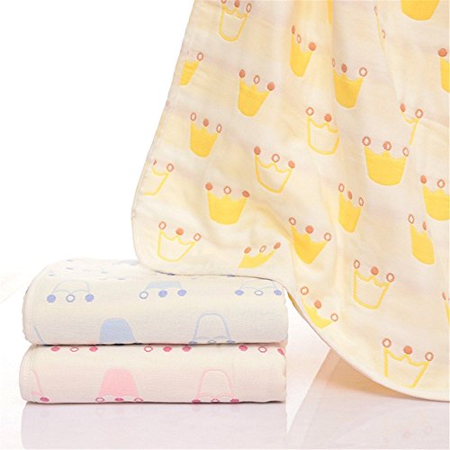 多機能 6重ガーゼケット ベビー おくるみ ガーゼタオル ベビーブランケット コットン100% 通気 フード付き (クラウン&イエロー)