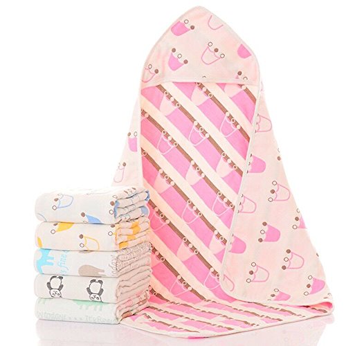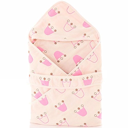 多機能 6重ガーゼケット ベビー おくるみ ガーゼタオル ベビーブランケット コットン100% 通気 フード付き (クラウン&ピンク)