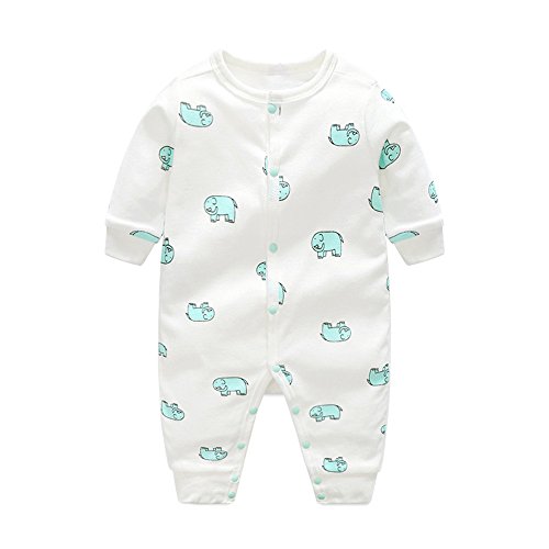 DWSIOOW 可愛いプリントカバーオール ベビー服 ジュニア ロンパース 前開き カジュアル 新生児 男の子 女の子 出産祝い プレゼント 8色選べる (73cm, ぞうさん)