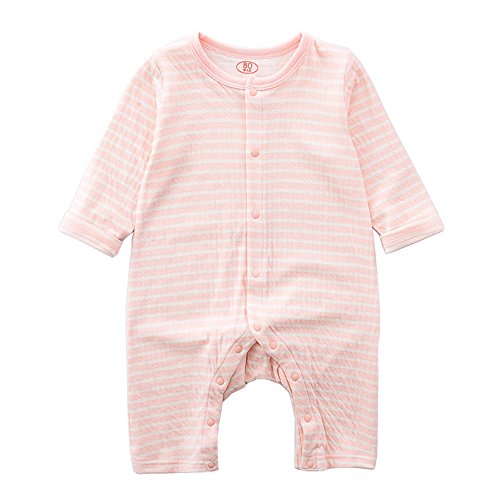DWSIOOW ベビー服 ボーダーロンパース 長袖ボディスーツ 新生児肌着 男の子 女の子 ロンパース カバーオール ボーダー柄 つなぎ 通年素材 可愛い 出産祝い プレゼント (70cm, ボーダーピンク)