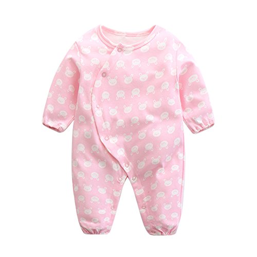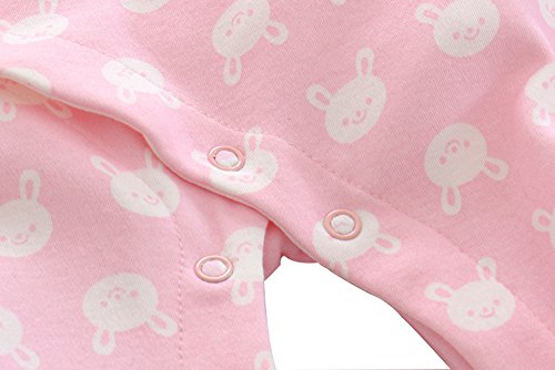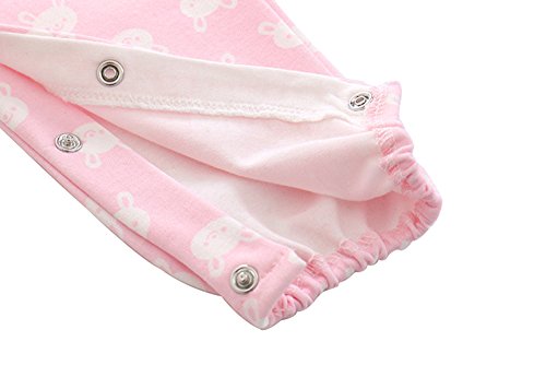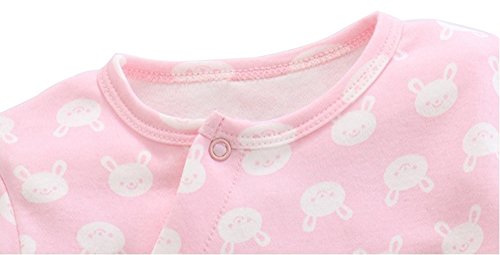 DWSIOOW ベビー服 可愛いプリントロンパース 長袖 斜め襟 前開き カバーオール うさぎ柄 通年素材 ベビーボディスーツ オールシーズン ジャンプスーツ 出産祝い プレゼント (90, ピンク)