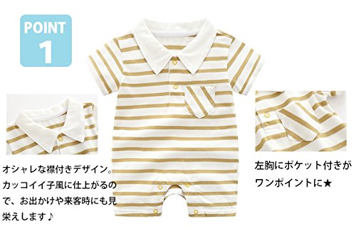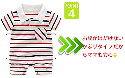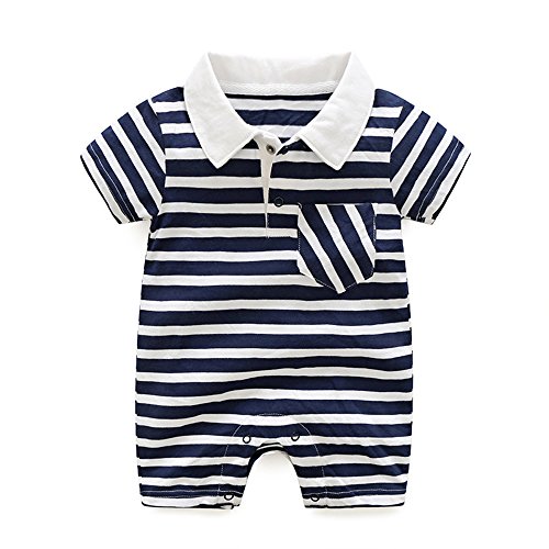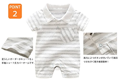 DWSIOOW ボーダーシャツロンパース ベビー服 つなぎ 半袖ボディシャツ キッズ 子供服 ショートオール ボーダーTオール 男の子女の子 夏 ギフト 出産祝い (73cm(6-9ヶ月), ネイビー)