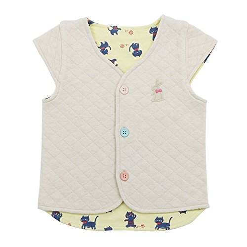 DWSIOOW 子供 キッズあったかキルトベスト 前開き ニット 中綿スクール リバーシブルーベスト アウター 防寒 春、秋、冬 出産祝い ギフト プレゼント 80cm 90cm 100cm (100cm, クリームイエロー)