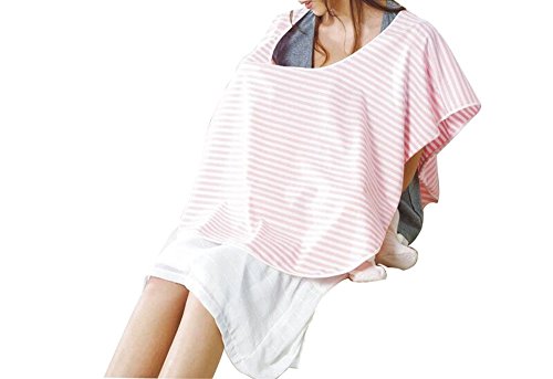 多機能 360度見られても安心 授乳ケープ 授乳カバー ナーシングカバー マタニティ ポンチョ型授乳ケープ お出かけグッズ 出産祝い プレゼント 出産準備 フリーサイズ (ボーダーピンク×ホワイト)