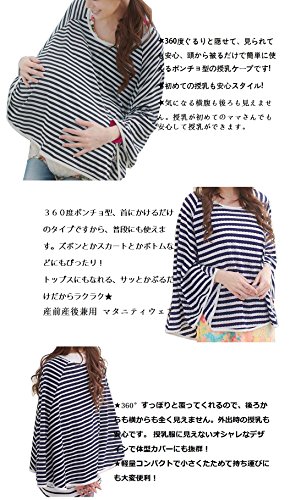 DWSIOOW 多機能で360度安心 授乳ケープ 授乳ポンチョ 授乳カバー マタニティウェア ボーダートップスにもなる 普段着にも使える フリーサイズ お出かけ便利 出産祝いにもオススメ (ボーダー紺×白)