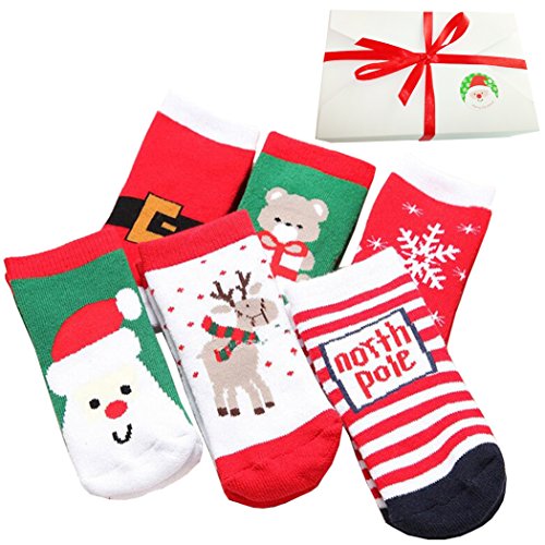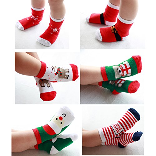 DYSONGO 子供 赤ちゃん用 クリスマス ソックス 靴下 クリスマスギフト 男女兼用 可愛い 冬の靴下 6ペア/ロット (1-3 嵗)