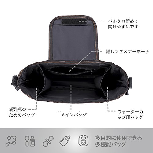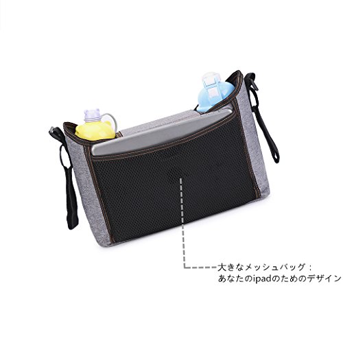 - 大容量 ベビーカー用バッグ: 赤ちゃん用のおもちゃ、シッピーカップ、哺乳びん、おむつに加え、携帯電話、iPadなどの端末、本、鍵、飲み物、お菓子など、様々な物を収納することができ、街や空港を歩いている時やショッピング中でも、必要な物をすぐに取り出すことができます。