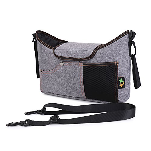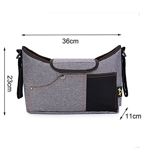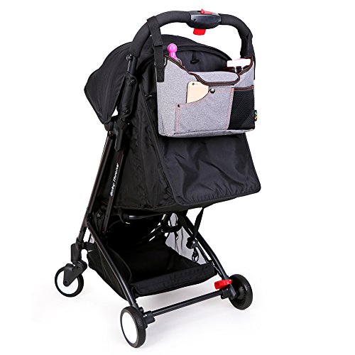 DYSONGO ベビーカー用バッグ ドリンクボトルホルダー - 多機能 ベビーカーバッグ 大容量のベビーおむつ袋 多数のベビーカーに取り付けられる (グレー)
