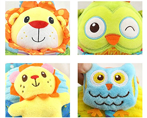 Daisyソフトカラフルな動物Sensory Hand Grasp Stuffed Owl Plush Rattle布ボールベビー乳児初期の教育おもちゃ人形with Teetherと安全ミラー