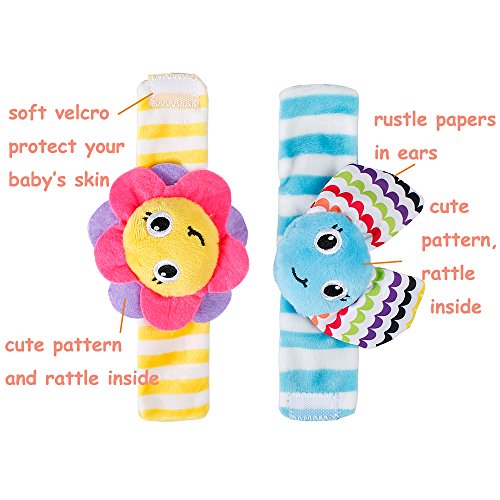 可愛い動物deisng – 花とガラガラBee手首の足のファインダーです。この素敵なおもちゃセットは、4つのかわいい花と動物が明るい色、赤ちゃんの視覚を刺激して、赤ちゃんのタッチを促すと、ヘルプ赤ちゃん用の間の区別が簡単異なるパターンを調査し、カラー、面の認識と音がすることがあります。小さなお子様はキュートに同じような友人。