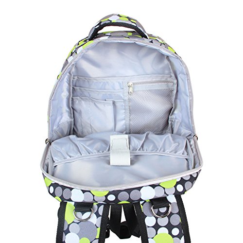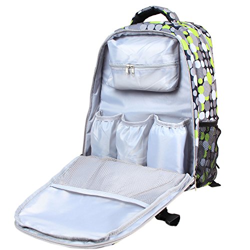 Damero Travel Backpack Diaper Bag (Grey and Green Dots) by Damero