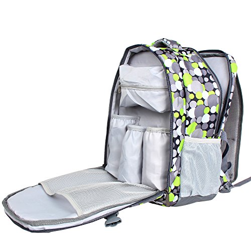 Damero Travel Backpack Diaper Bag with Changing Pad and Metal Loop for Stroller Hook (Green Dots) by Damero