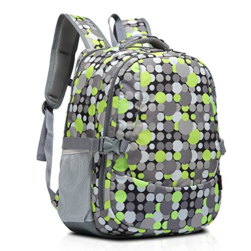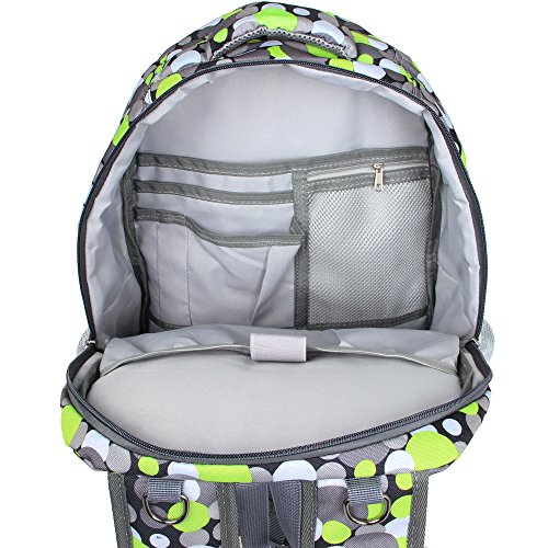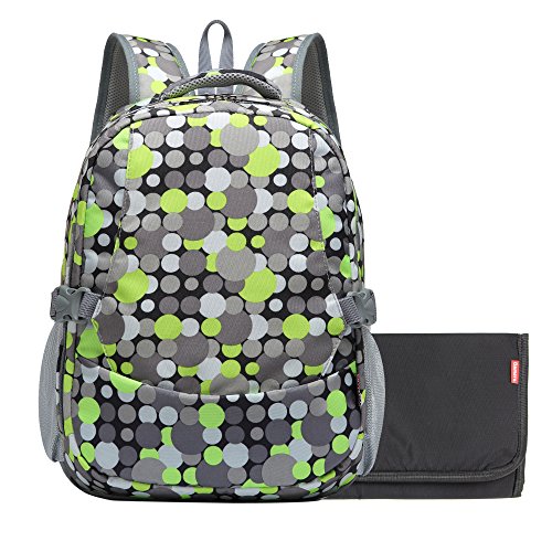 Damero Travel Backpack Diaper Bag with Changing Pad and Metal Loop for Stroller Hook (Green Dots)