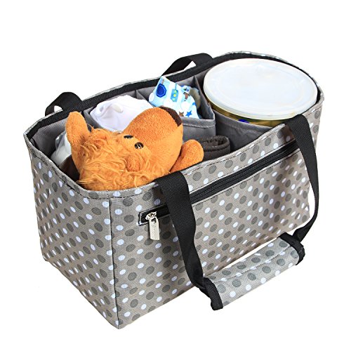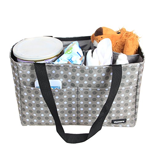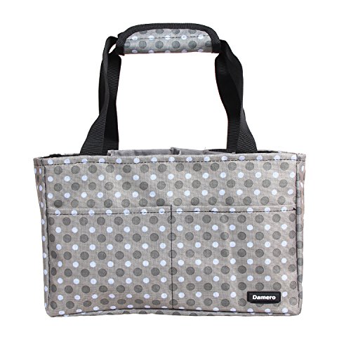 - Damero Insert Organizer (Sewn to the Bottom) for Women's Handbag / Purse / Diaper Bag / Backpack with Handles (Gray Dots)
