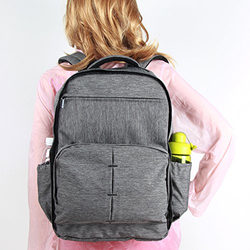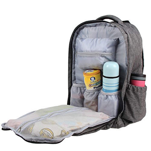 MULTIFUNCTIONAL: If fashionable look and multifunctional organizer are what you're after, look no further than the Damero diaper backpack. Enjoy the happiness of working and travelling with babies.;LIGHTWEIGHT & WATERPROOF: Nylon material and waterproof zippers. Boxy design allows you to set your backpack upright on the ground or table, so the corners don't slope down.-- Bag dimensions: 12.5L'' x 6''W x 16''H, Weigt: 0.78KG;ERGONOMICALLY DESIGNED: Cushioned shoulder straps and the bag shape fit a man's frame but will provide comfortable for Mom when you're on the go with babies.;MULTIPLE POCKETS: laptop/iPad pocket, 5 bottle holders(includes 1 insulated pocket, 2 side pockets), zippered pocket , baby wipes pocket, pen/pencil slots, baby spoon slots, key clips, office supplies organizer and more. 2 large compartments with clamshell opening keep items visible.;Included a padded waterproof changing mat with large surface(22.8 inches x 13.5 inches)