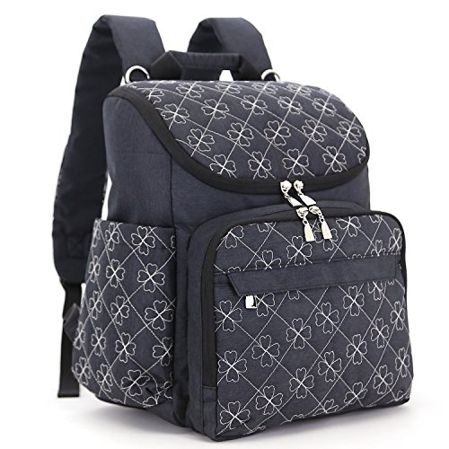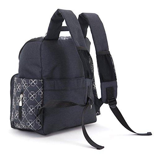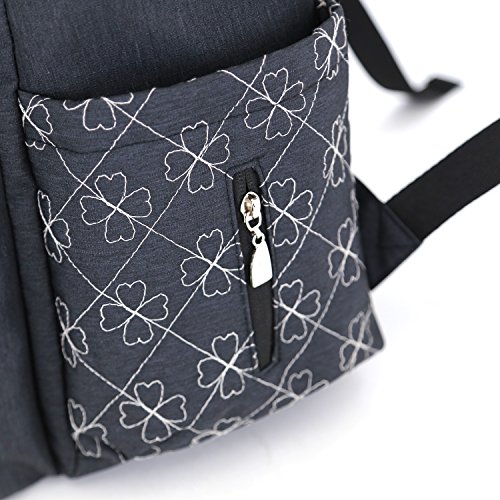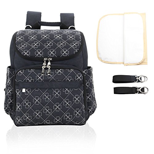 Damero マザーズバッグ 軽量 撥水ナイロン 大間口 多いポケット ベビーカー用提げベルト、おむつ替え用シート付き 四葉のクローバー刺繍パタン プレゼント(黒)