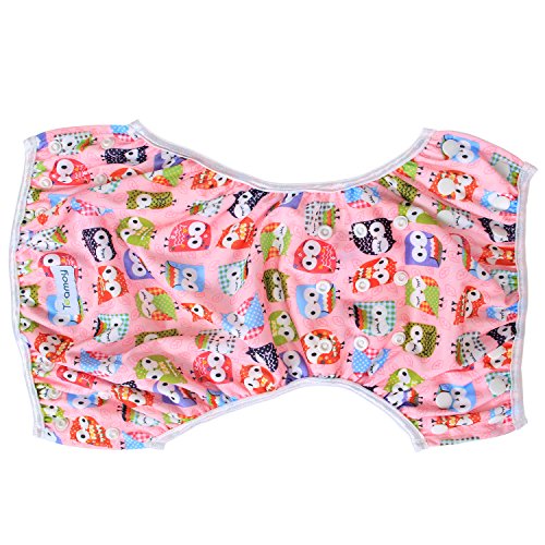 Teamoy 水遊びパンツ 2点セット 0-3歳 赤ちゃん用 ボタンでサイズ調整可能 防水外層 ポリエステルメッシュ内層 オムツカバー スイミング教室・公園・海水浴・温泉旅行(ジャングル+フクロウピンク)