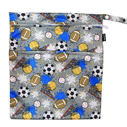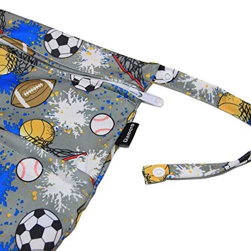 - Damero Cute Travel Baby Wet and Dry Cloth Diaper Organizer Bag (Medium, Footballs)